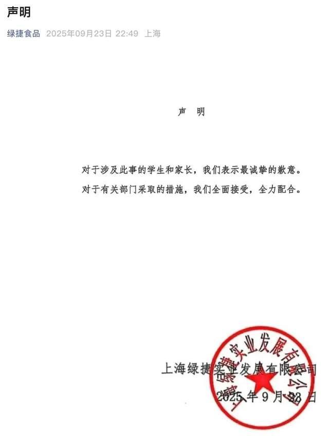 9月23日深夜,绿捷食物发传教歉声明,暗示对涉及此事的学生和家长暗示歉意,并接管相关部分的办法。然而,这份简短的声明并未平息家长们的。家委会代表李元感遭到家长群中的火气,家长们纷纷查起本人学校的供应商。李元女儿就读的学校虽然不是绿捷供餐,但也多次因餐饭难吃惹起关心。学校暗示能做到平安、卫生、管饱,但养分和甘旨较难实现,激发家长们的不满。